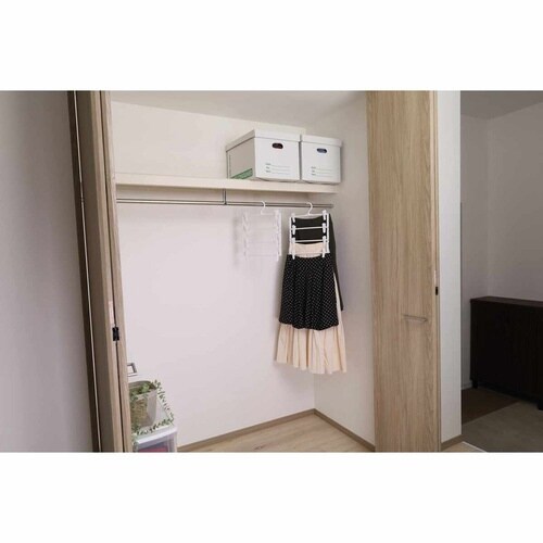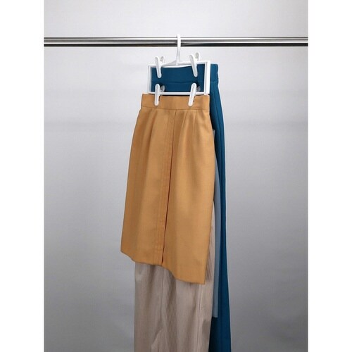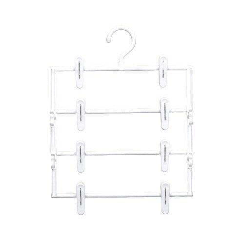 スカートやパンツが4着収納できるハンガーです。 シワが付きにくく、かさばりません。 省スペースで収納できます。 クリップは幅や角度が調整できるので、便利です。 フックは360度回転式です。 |