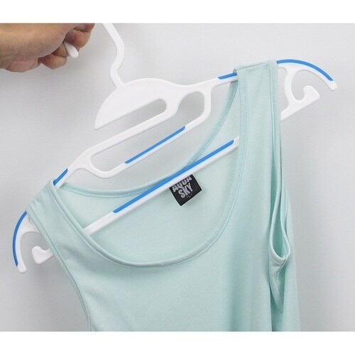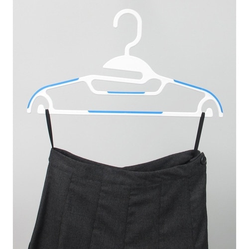洗濯・収納どちらにもお使いいただける、すべり止めつきのハンガーです。 4箇所もラバー素材のすべり止めがついているので、掛けた服がずり落ちにくいです。 |