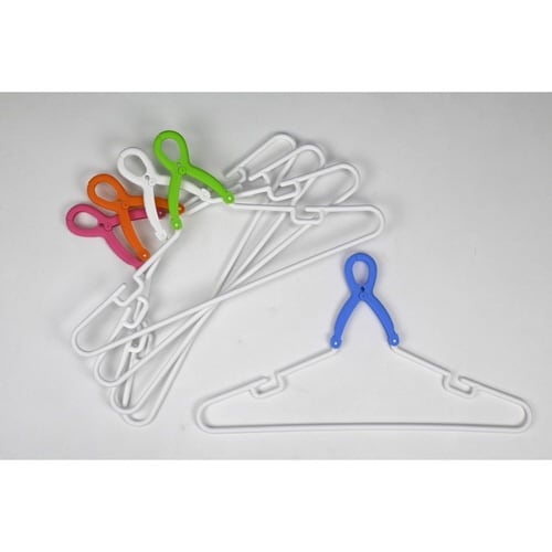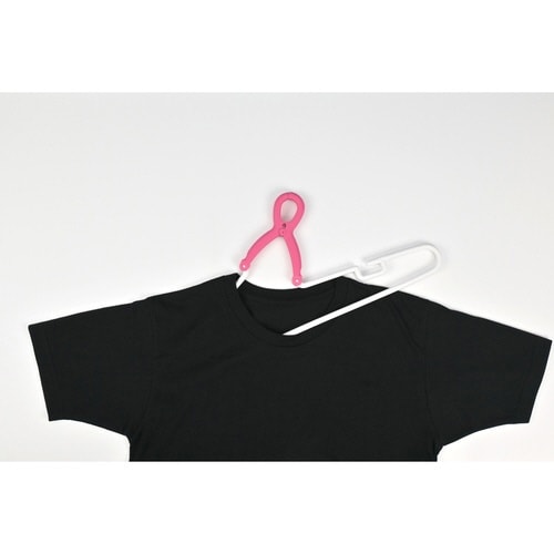 竿にしっかり固定できるキャッチ式のハンガー5本組です。 肩部を握ると変形するので、襟首部分を伸ばさず掛けられます。 キャミソールやエプロンなども掛けられる肩ひも掛け付きです。 |