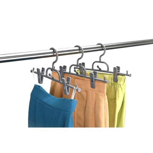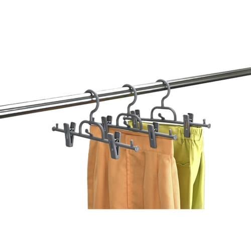 連結できるボトムハンガーです。 3本組です。 重ね吊りが出来るので、省スペースで収納できます。 ボトムの幅に合わせて、クリップを動かすことができます。 |