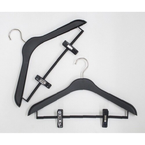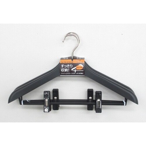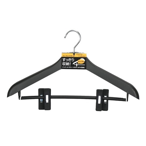 ベーシックなデザインのスーツ用フォーマルハンガーです。 クリップ付きなので上着と一緒にパンツ・スカートを吊るせます。 クリップに滑り止めが付いているので衣類がズレ落ちません。 |