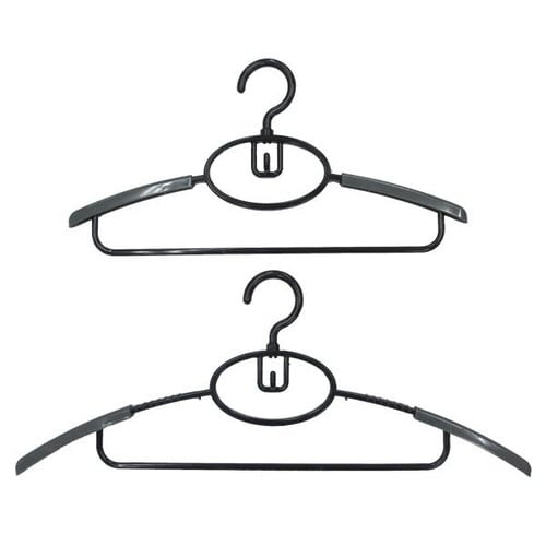 肩幅に合わせてスライドします。 連結して使えるのでスリムに収納できます。 フックは回転するので場所を選ばず掛けやすいです。 2個入りです。 |