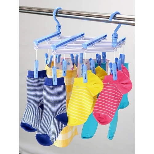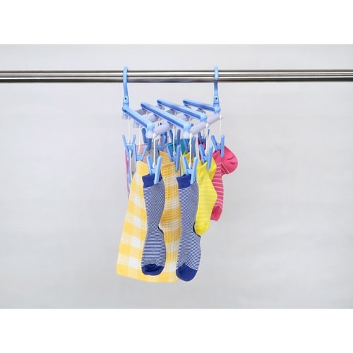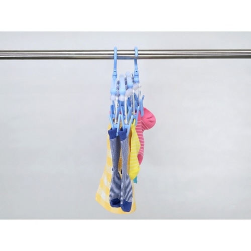 洗濯ハンガー 伸縮 フリーピンチャー 14ピンチ スカイブルー