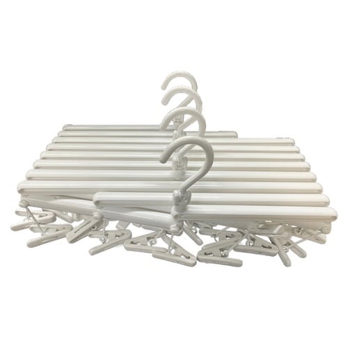 使う場所や洗濯物の量に合わせて、サイズ調節ができるピンチハンガーです。 幅を伸ばすとスリムになり、狭い場所でも使えます。 竿からピンチまでの距離が短いので、低い物干し竿でも快適です。 |