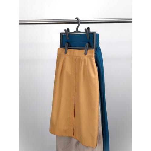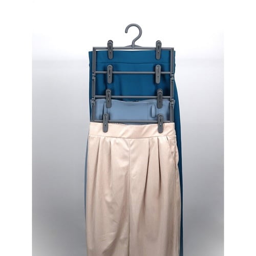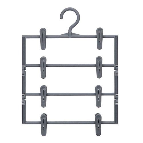 スカートやパンツが4着収納できるハンガーです。 シワが付きにくく、かさばりません。 省スペースで収納できます。 クリップは幅や角度が調整できるので、便利です。 フックは360度回転式です。 |