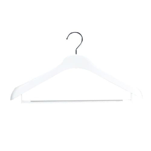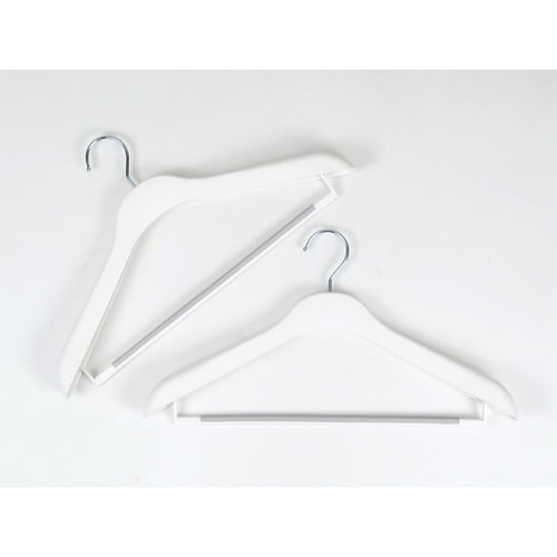 肩幅約42cmのフォーマルハンガーです。 2本組です。 スラックスバーが付いているので、ズボンやスラックスを収納できます。 スラックスバーにはすべり止めが付いているので、ズレ落ちを防ぎます。 |
