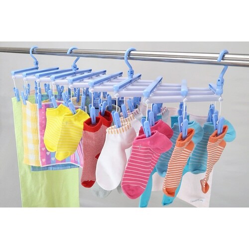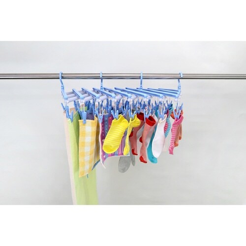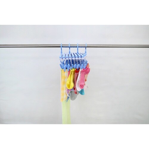 洗濯ハンガー 伸縮 フリーピンチャー 44ピンチ スカイブルー