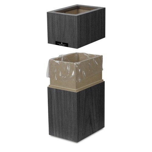 置き場所を選ばないシンプルな木目調のダストボックスです。 サッと捨てられるオープンタイプのふたです。 ゴミ袋を隠してセットできます。 |