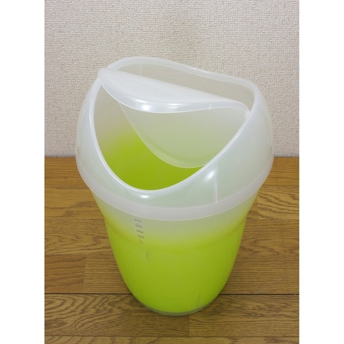 カクテルグラスを思わせる透明感とグラデーションが奇麗なゴミ箱です。 スイング式の回転蓋仕様です。 スイングカバーは中身のゴミが見えにくくなっています。 |