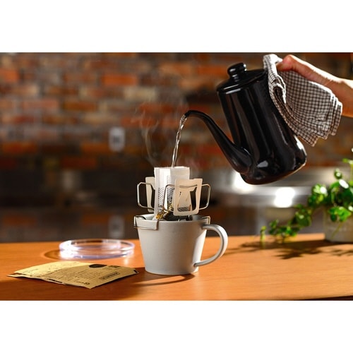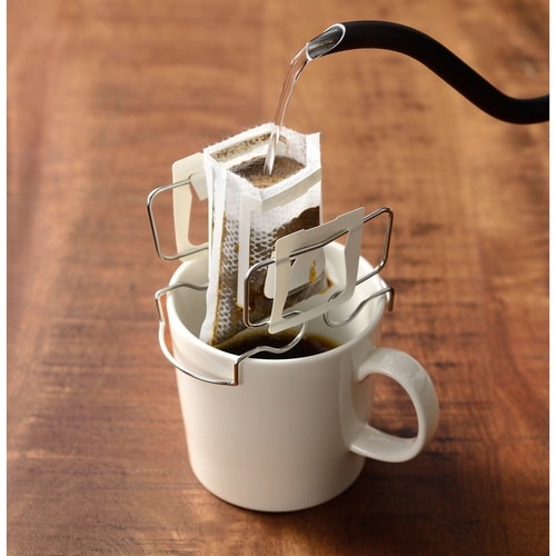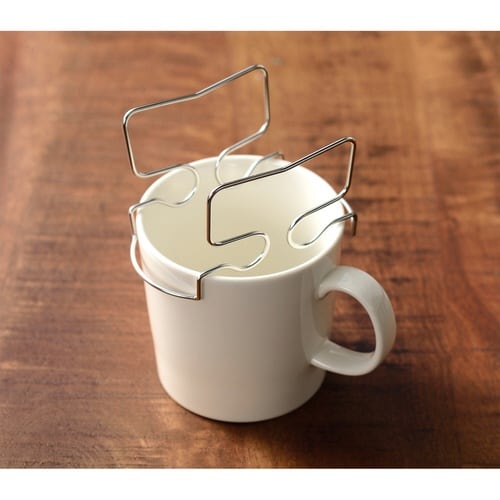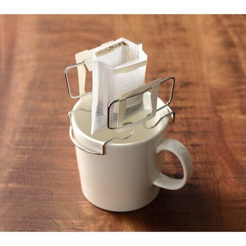 ステンレス製のドリップバッグホルダーです。 コーヒーに浸からず、ドリッパーで抽出するような透過式で淹れられます。 注ぐ量が分かりやすく、雑味を抑えたクリアな味わいのコーヒーをお楽しみいただけます。 |