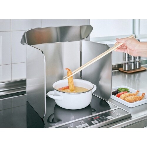 キッチンの壁やコンロに飛び散る料理の油や、汚れを逃さずキャッチする4面レンジガードです。 コンロに置くだけの簡単設置です。 |