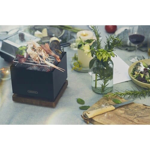 テーブルを囲んで楽しむBBQ アウトドアだけでなくテラスや室内でも使える スタイリッシュなデザイン 贅沢な大人のAPELUCA時間 コンパクトで気軽に使いやすい |