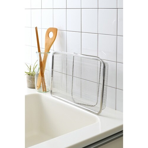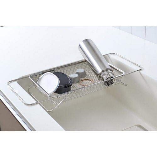 キッチン小物の水切りに最適なのがメッシュタイプの水切りかごです。 ご家庭のシンクに合わせて伸縮させることができます。 シンクの中だけでなく、天板上でも使用可能です。 |