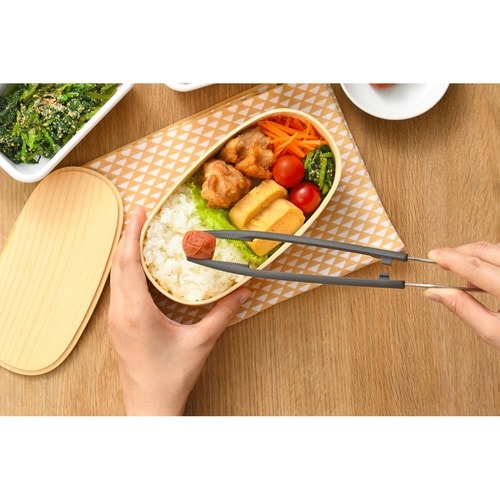 片手でロック・解除できるロック機能付き菜箸です。 菜箸みたいにバラバラせずに、調理中でもそのまま置けるので作業がスムーズです。 ギザギザの先端ですべりにくく、小さい物もしっかりキャッチできます。 |