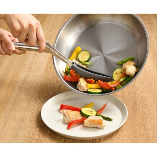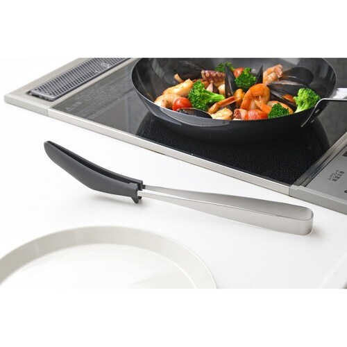 炒めやすい角度にこだわった、炒め物に最適な長めのトングです。 平らな面で、細かい具材もサッと集められます。 先端が浮くので、キッチンを汚さずに置くことができます。 |