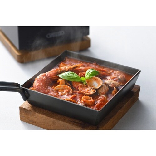テーブルトップコンロと組み合わせて使える 本格的な極厚鉄板 汁気のあるメニューにも使いやすい深型 注ぎやすい設計 贅沢な大人のAPELUCA時間 |