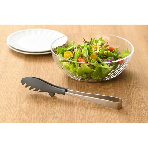 片手でロック・解除できるロック機能付きトングです。 テーブルでも作業スペースでもコンパクトに置けて、収納場所にも困りません。 先端がテーブルに付かないので、そのまま置くことができます。 |