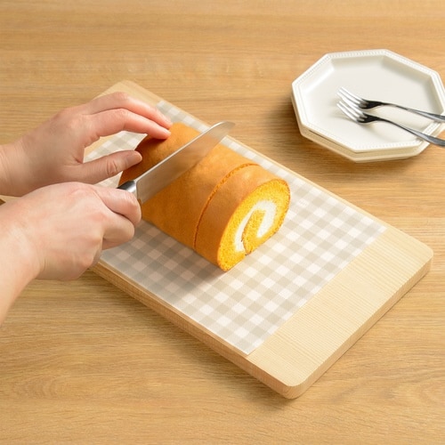 雑菌の付着や繁殖を防いで安心して使えます。 白いまな板の気になる色移りを防ぎます。 食材を均等に切り分けたい時にも便利です。 おもてなしやラッピングにも使えます。 |