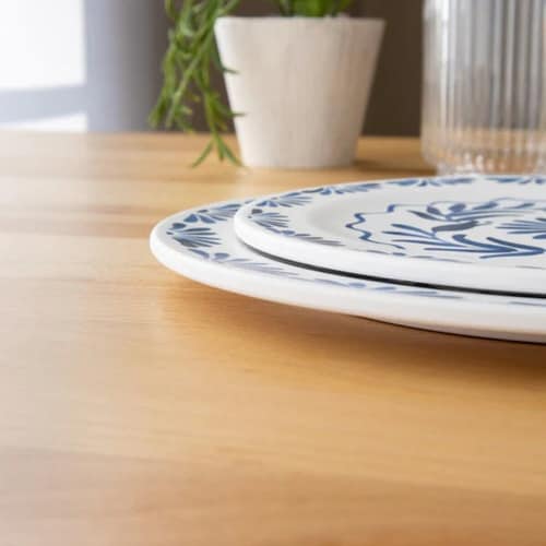 ホワイトベースにブルーのプラントデザインが特徴のディナープレートです。 メラミン樹脂製なので丈夫で割れにくく扱いやすいです。 アウトドアや持ち運びにもおすすめです。 |
