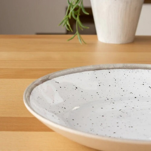 自然由来成分を取り入れた人と環境に優しい浅型ボウルです。 メラミン樹脂製なので丈夫で割れにくく扱いやすいです。 汁気のある料理、1人分のメイン料理、パスタ皿としても活躍します。 |