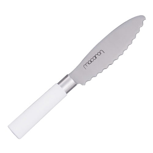 サンドイッチナイフ 刃渡り14.5cmです。 程よい重量感で握りやすいホワイト色のハンドルは、清潔感があります。 どんなキッチンにも溶け込むやさしい雰囲気が自慢のMACARONシリーズです。 |