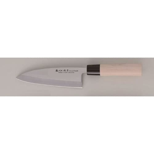 魚の三枚おろし、刺身の盛り合わせなど、主に魚料理に用いる本格出刃包丁15.5cmです。 左利きの方々にも配慮して設計された和包丁で、右利き用、左利き用がございます。 |