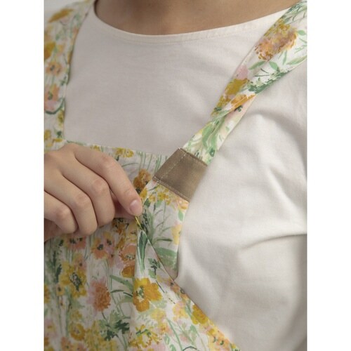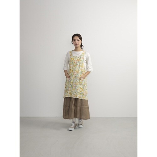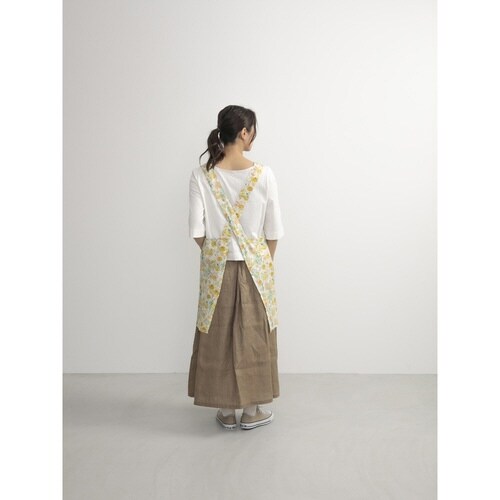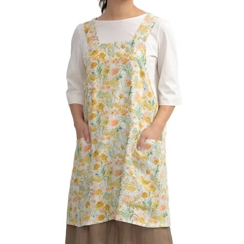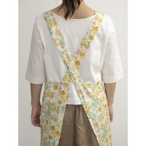 エプロン 花柄 リバティリネンバッククロスエプロン COCOWALK イエロー