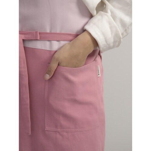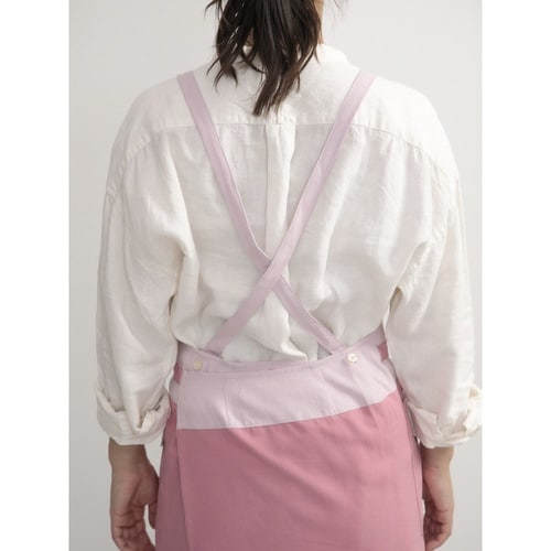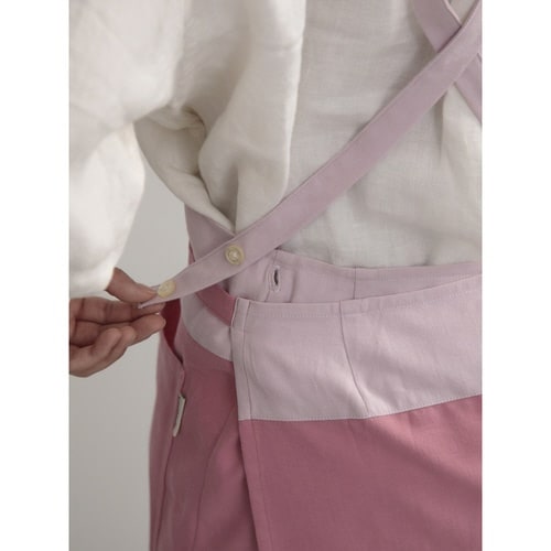 バイカラーがアクセントになったラップエプロンです。 心地良い肌触りの綿100%の生地を使用しています。 簡単に着脱でき、長時間つけていても疲れにくいバッククロスタイプです。 |