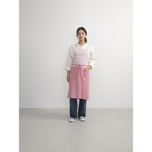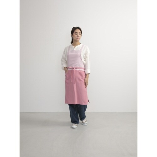 エプロン 無地 バイカラーラップエプロン COCOWALK ピンク