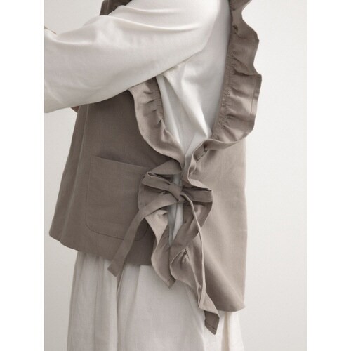 エプロン 無地 Linc 脇リボンベストエプロン グレージュ