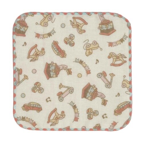 おもちゃのデザインが可愛いミニタオルです。 約15×15cmで持ち歩きに便利なサイズです。 四つ折りにするとお子様のポケットに入ります。 綿素材で柔らかく、裏は吸水性のあるパイル生地です。 |