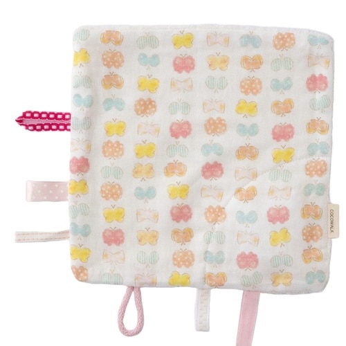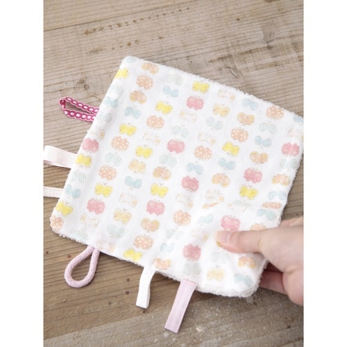 赤ちゃんの興味をひく工夫いっぱいのハンカチです。 押し笛付きです。 ガーゼ地とパイル地のリバーシブルです。 タグやひもがいっぱい付いています。 安心の日本製なのでプレゼントにもおすすめです。 |