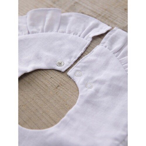 360°使えるまあるいフリルスタイです。 丸い形なので汚れてもくるっと回して使えます。 女の子らしいかわいいフリルデザインです。 着脱しやすいスナップボタン式です。 |