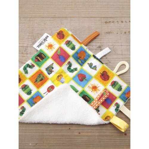 人気の絵本はらぺこあおむしがかわいいポップなデザインのハンカチおもちゃです。 折りたたんでもちはこべるので、お出かけやねんねの時にも便利です。 |