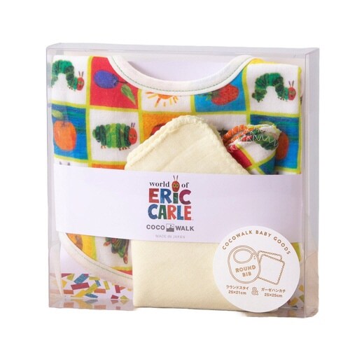 人気の絵本はらぺこあおむしがかわいいポップなデザインのスタイとハンカチのギフトセットです。 素材選びや縫製にこだわり国内で1つ1つ大切に作られた日本製です。 |
