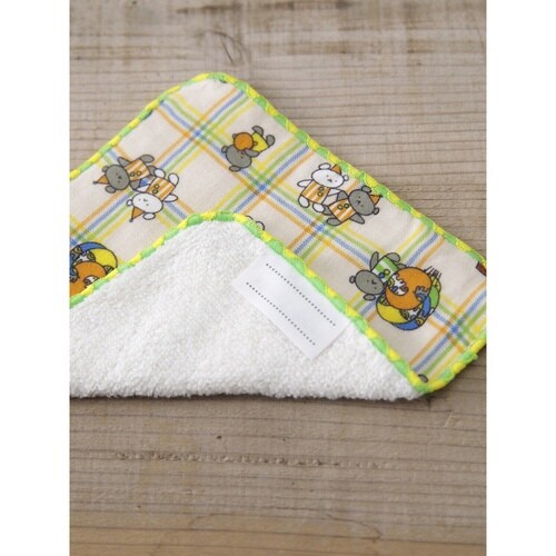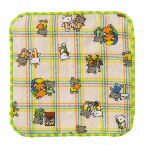 人気絵本こぐまちゃんシリーズのミニハンカチです。 表面はガーゼ、裏面はパイルと肌ざわりが良く、赤ちゃんから使っていただけます。 裏面には名前の書けるネーム付です。 |