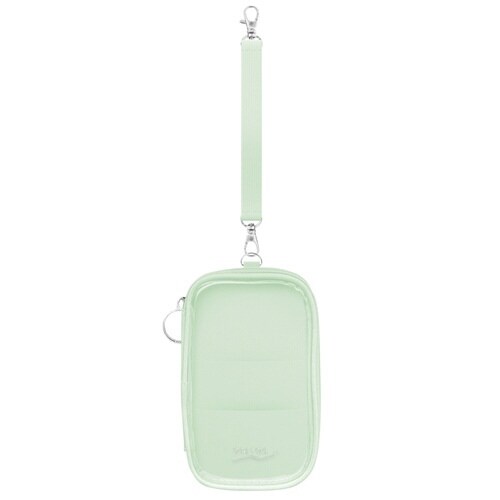 ストラップ&フック付きなので、カバンに簡単に付けられます。背面にはトレカやアクスタ台座の収納に使えるポケットが付いています。