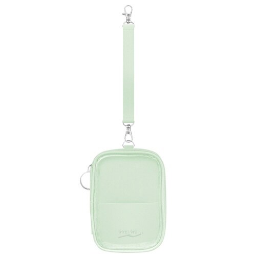 ストラップ&フック付きなので、カバンに簡単に付けられます。背面にはトレカやアクスタ台座の収納に使えるポケットが付いています。