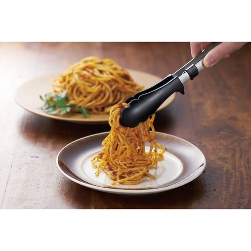 炒め物から盛り付けまで使える万能トングです。 トングをテーブルに置いても先端がつかないので汚れません。 スライドロック付きで収納するときも広がらずにスマートに片付けられます。 |