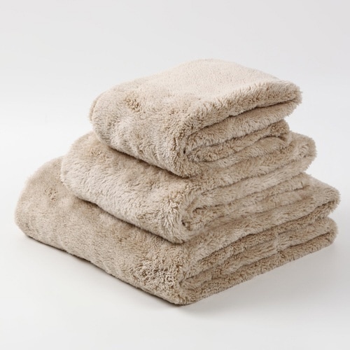 思わず頬ずりしたくなるふわふわのバスタオルです。 マイクロファイバーを高密度に織り上げたプレミアム仕様です。 パイル長が約7mmもあり、ふわふわの肌触りです。 |