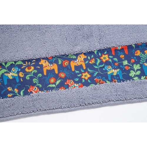 パイル生地と、綿のプリント生地のラインがアクセントになったダーラヘスト柄のキッチンマット50×120cmです。 |