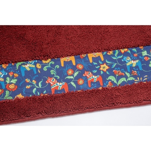 パイル生地と、綿のプリント生地のラインがアクセントになったダーラヘスト柄のキッチンマット50×120cmです。 |