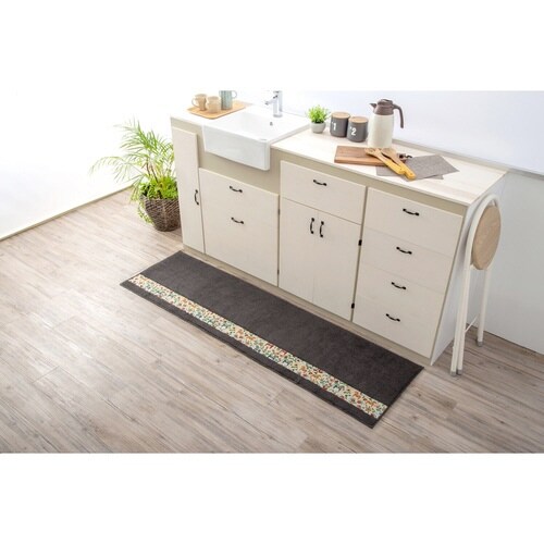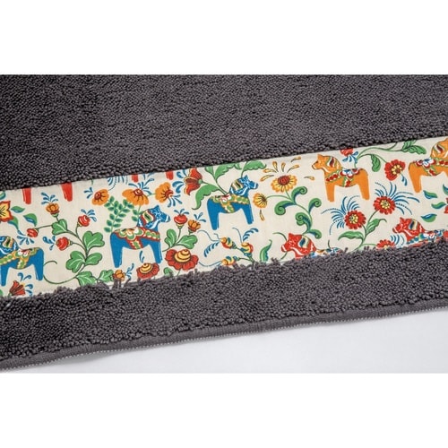 パイル生地と、綿のプリント生地のラインがアクセントになったダーラヘスト柄のキッチンマット50×120cmです。 |