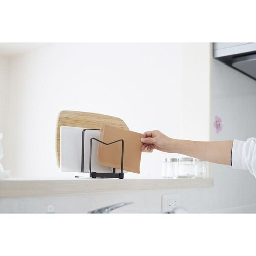 置き場所に困るまな板や鍋ふたをコンパクトに収納できるスタンドです。 調理中にも洗い終わった後の水切りとしてもお使いいただけます。 引き出しタイプの収納で立てて収納することもできます。 |