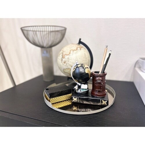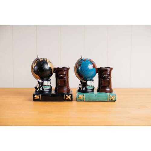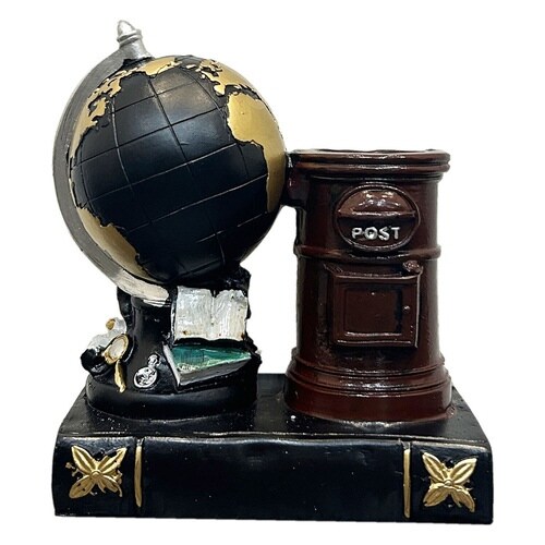 洋書とポストをかたどったペンスタンドです。 深い味わいの地球儀モチーフが、雰囲気をさらに高めてくれます。 玄関や狭いスペースにちょこっと置けるサイズです。 |
