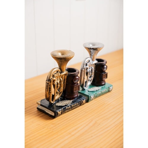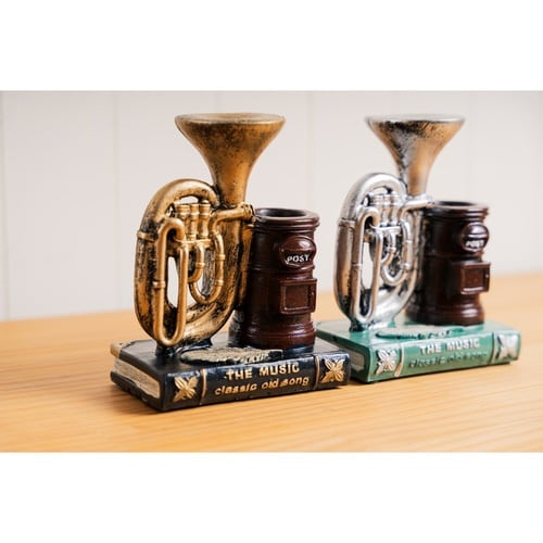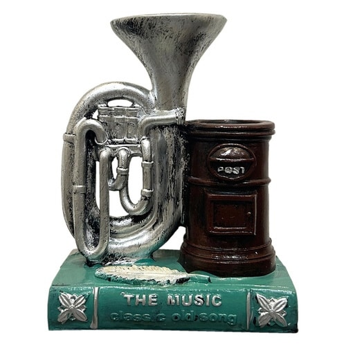 洋書とポストをかたどったペンスタンドです。 重厚感のある楽器モチーフが、雰囲気をさらに高めてくれます。 玄関や狭いスペースにちょこっと置けるサイズです。 |
