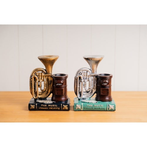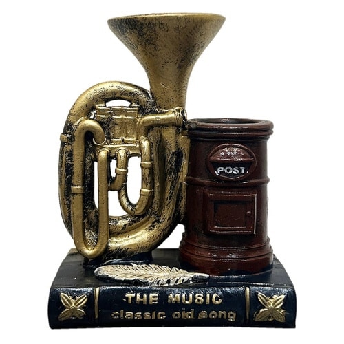 洋書とポストをかたどったペンスタンドです。 重厚感のある楽器モチーフが、雰囲気をさらに高めてくれます。 玄関や狭いスペースにちょこっと置けるサイズです。 |