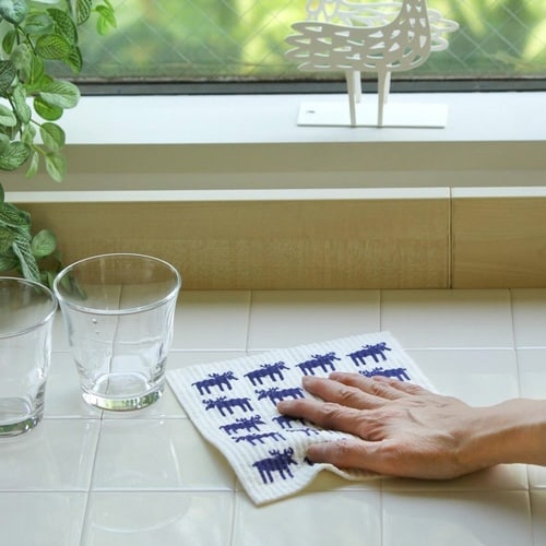 吸水力と速乾力に優れており、台ふきんだけでなく水切りマットとしても活躍します。汚れが気になった場合は洗濯機で丸洗いや煮沸消毒が可能です。