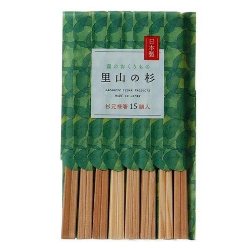 国産杉間伐材を使用した日本製のお箸です。 森をイメージしたパッケージで清々しさを演出します。 15膳入りです。 |