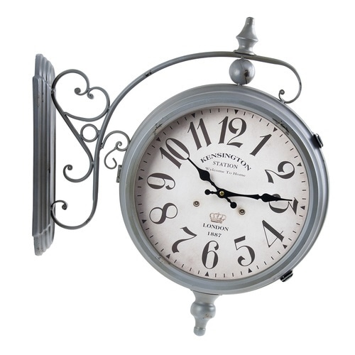 掛け時計 ウォールクロック アンティーク 両面 グレー 幅52cm